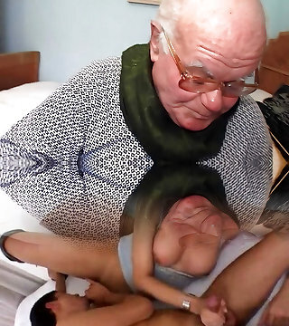 Sissy taking care of Nikki Nuttz needs by giving him her antique snatch and taking his young trunk