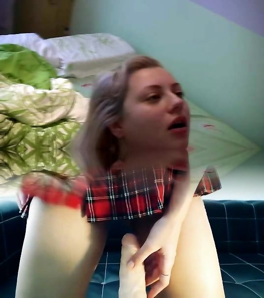 Curvy coed Stella Carter plumbs her cootchie with a yam-sized dildo