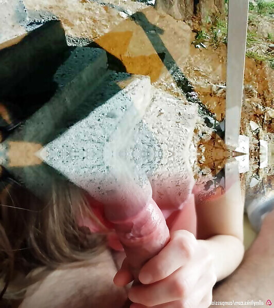 Public flashing tits and risky sex in the forest slow motion fuck