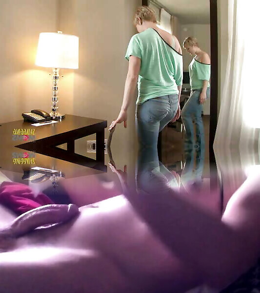 Brief haired light-haired woke up with a big boner inwards